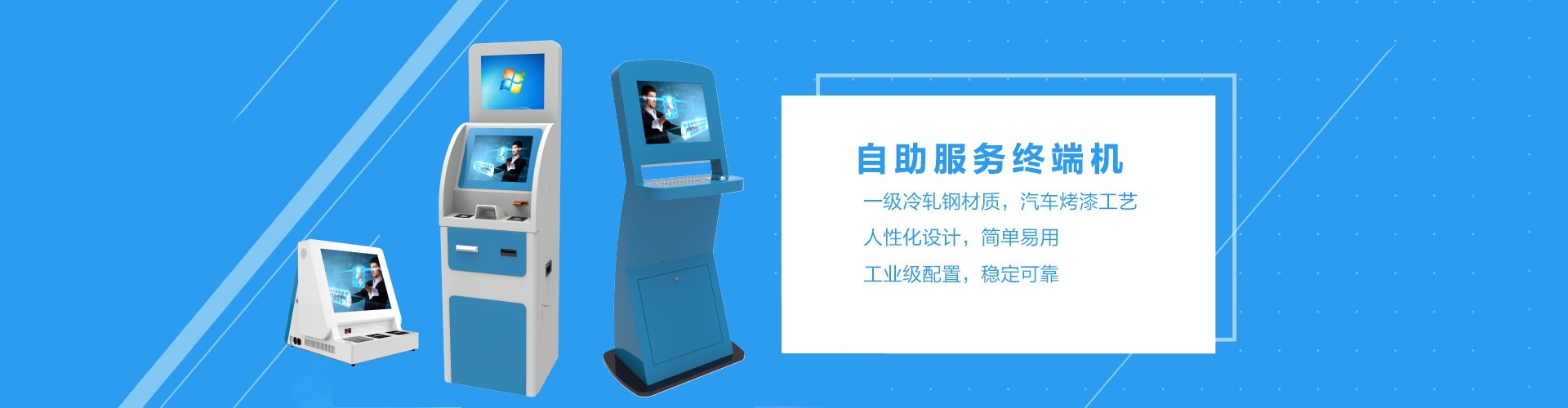 公司專注于自助終端的研發與生產,擁有強大的自助終端產品設計團隊,可根據客戶個性化需要定制終端,產品設計按照人體工程學用戶體驗,充分考慮設備運營實踐,有針對性的開發相應軟件,便于設備的遠程管理和運維。